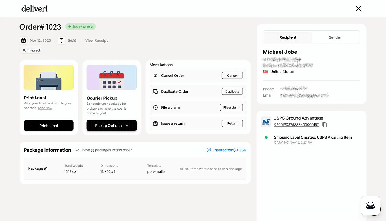 Create and purchase a shipping label.